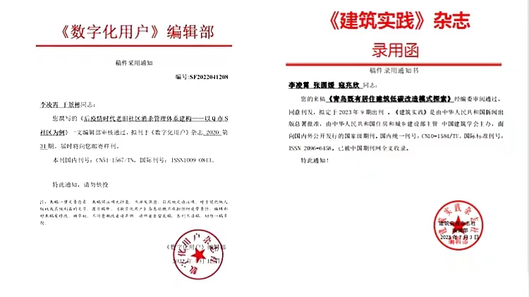 班里同学在论文科研方面也有所斩获,迄今为止,共有五位同学在论文专利方面取得优异成绩。其中共有2名同学以第四作者在AILCD会议论文上发表文章,1名同学在《建筑实践》杂志发布文章,1名同学在数字化用户中发布文章,1名同学在中国科技人才中发布文章。