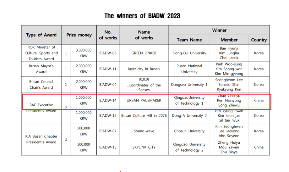 釜山国际建筑设计工作营第四名