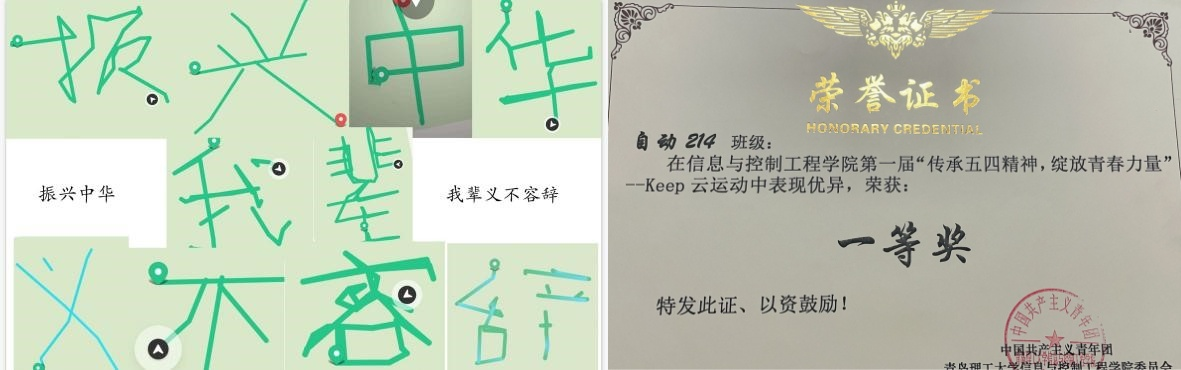 在首届keep云上健步走活动中,自动214班荣获一等奖,增强了班级凝聚力,为班级挣得荣耀。