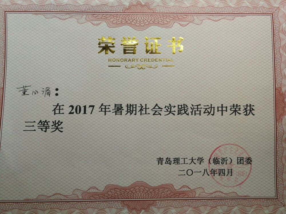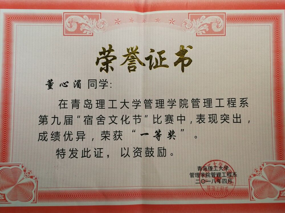 她知道仅仅学习书本上的知识是远远不够的,入学之初便积极筛选自己感兴趣的社团,最终成为了E梦英语社团的一员,在这个大家庭中她与社员们集思广益,创造了许多傲人的成绩。当然在这期间她们之间也会有摩擦,有阻力和困难,也正是因为这些,她和同学才更好的凝聚到一起,结交了许多的好朋友,交际圈不断扩大。在生活中,她乐观、向上,积极参加课外活动,帮助需要帮助的人,拥有良好的人际关系,获得了大家的尊重和支持。在多次活动中,形成了较好的组织管理理念、培养了团队合作能力。在社会实践上,积极参与课外实践,参与学校管理工程系教研室组织的实训超市项目,在其中担任财务一职,帮助团队解决了管理方面的难题。