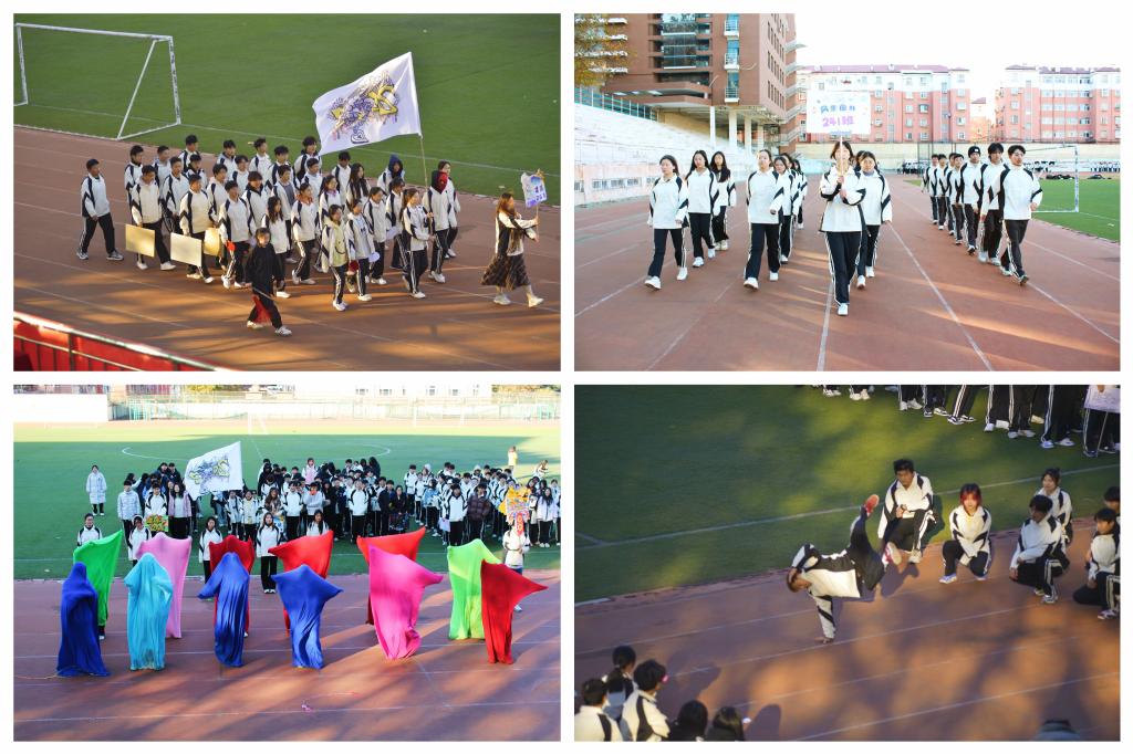 运动会共设有“疯狂毛毛虫”“水到渠成”“多人多足”“传递呼啦圈”“蒙眼敲锣”“八字跳大绳”六个趣味项目和“100米、200米、7*100米”三个径赛项目。赛场上,运动员们的表现精彩纷呈,趣味项目中,同学们依次分成多个小组进行比赛,以饱满的热情投入各项比赛中;田径赛场上,运动员们如离弦之箭般冲刺,以坚韧不拔的精神向终点进发,展现了自己的实力与风采。观众们脸上都洋溢着兴奋与期待,纷纷为班级同学呐喊助威。“加油!加油!” 的声音此起彼伏,如同一阵阵汹涌澎湃的海浪,冲击着整个赛场,像是一个充满活力的欢乐海洋。师生们感受到了团队协作的力量,体验到了拼搏奋斗的乐趣,也收获了友谊和欢笑。