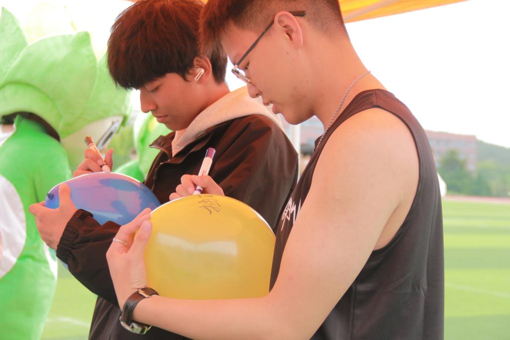 其中,脑力激荡区的“急速三子棋”挑战,团队成员以接力的方式快速跑至棋谱并完成落子,这是一项体力与智力的双重考验,同学们在参与过程中进一步体会到了团队合作与沟通的重要性;同学们在潜能开发区的“同手同脚”挑战中,队员们齐心协力、相互鼓励,共同感受团队协作的温暖力量;舒心驿站区,同学们先后挑战中华优秀传统文化“投壶”项目,在文化诠释与互动体验中陶冶情操,愉悦心情;科学宣泄区中同学们将近期的烦恼写在气球上纷纷“踩爆emo”,有效宣泄了负面情绪;艺术疗愈区“书签DIY”的艺术角落,同学们用手中的画笔,绘制出一幅幅内心世界的细腻画卷。操场上,同学们在欢声笑语中体验了心灵的交流和情感的碰撞。