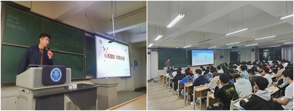 成立学院国防教育宣讲团,积极发挥朋辈引领作用。以退伍复学学生为主,毕业校友为辅,形成一支能说善讲的国防教育宣讲团队。退伍复学学生代表刘阳、吴杰敏结合自身经历,分享在部队服役的收获和感悟,以及参军入伍给自己带来的积极影响,倡导同学身体力行,切实为维护国家安全和社会稳定做出贡献。