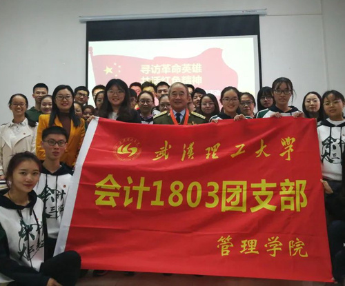 毛兰成在武汉理工大学作专题报告后,和部分师生合影。
