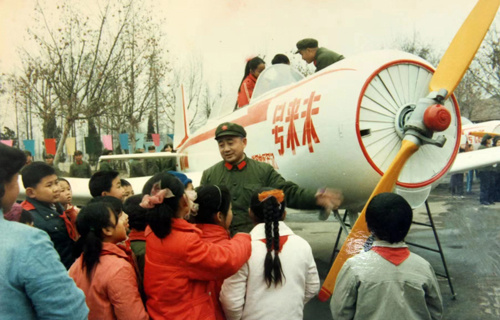毛兰成向少先队员们宣讲人民空军光荣历史。