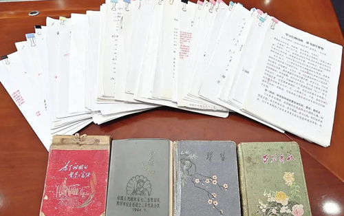 毛兰成的日记本和整理的宣讲材料。