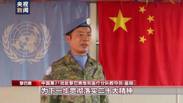 中国第21批赴黎巴嫩维和医疗分队教导员 童翊:我们结合国外维和实际,鼓励大家自发地融入学习报告热潮中,使二十大报告入脑入心,为下一步贯彻落实二十大精神,打下坚实的理论基础。(总台记者 白洁)