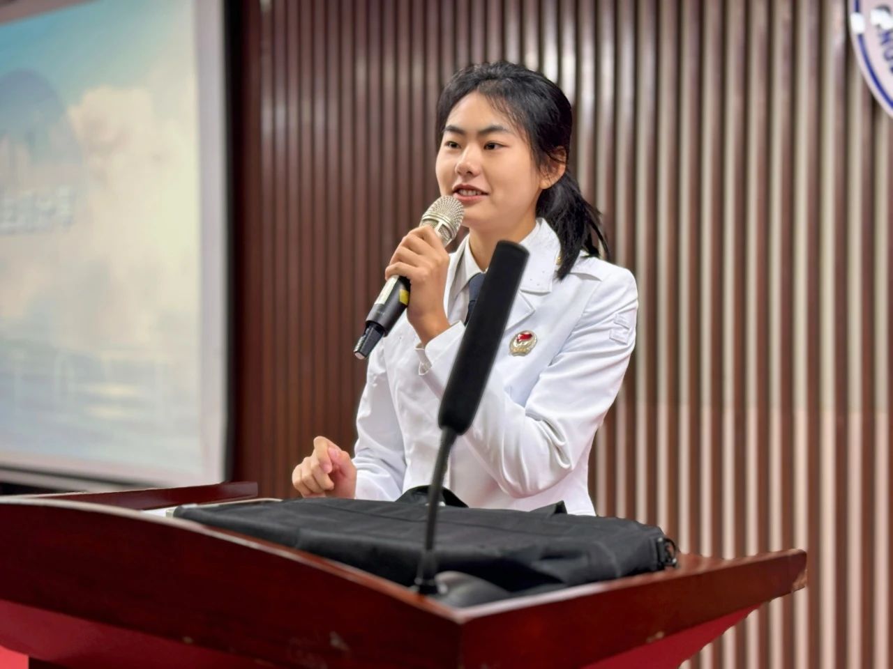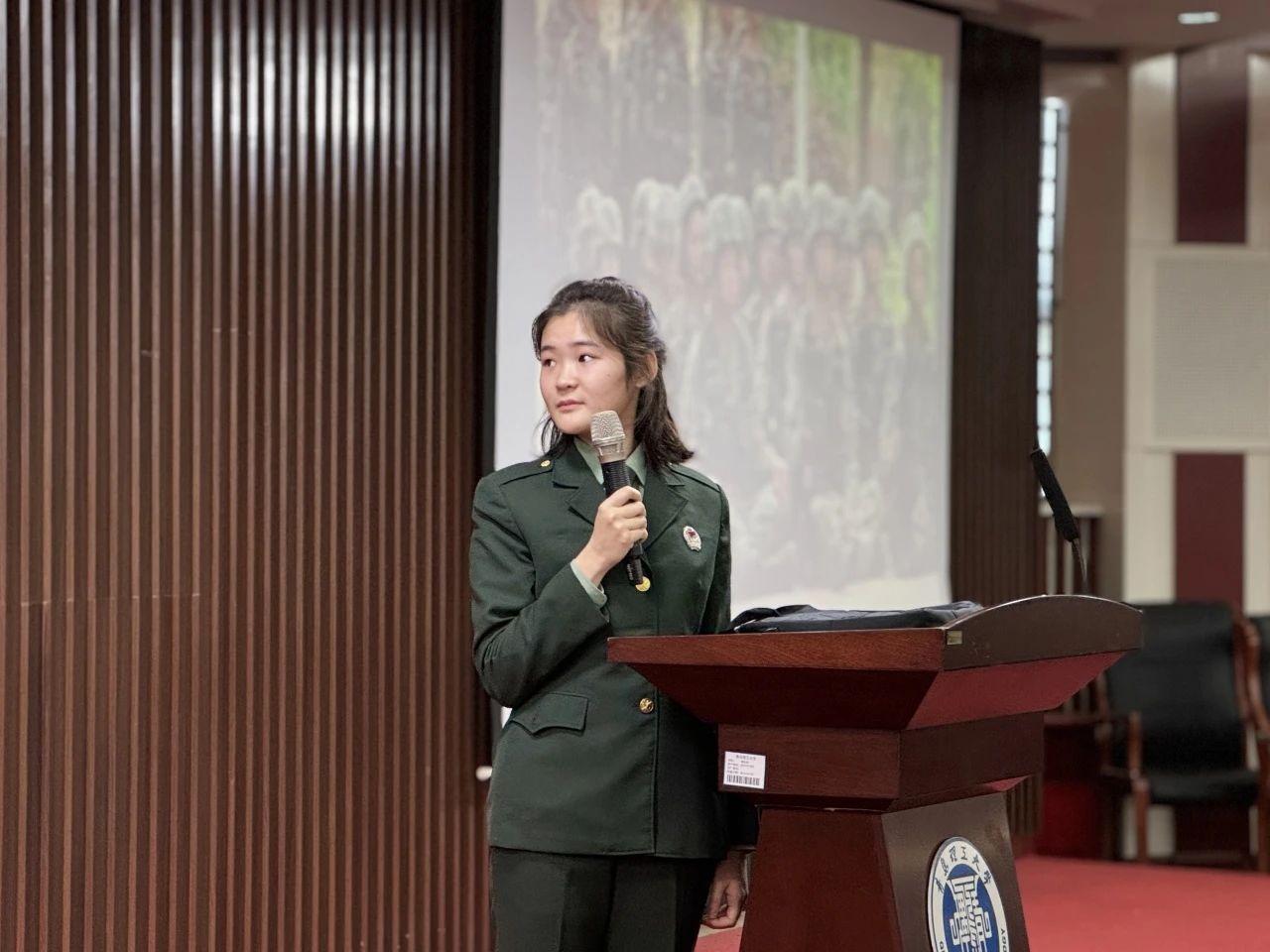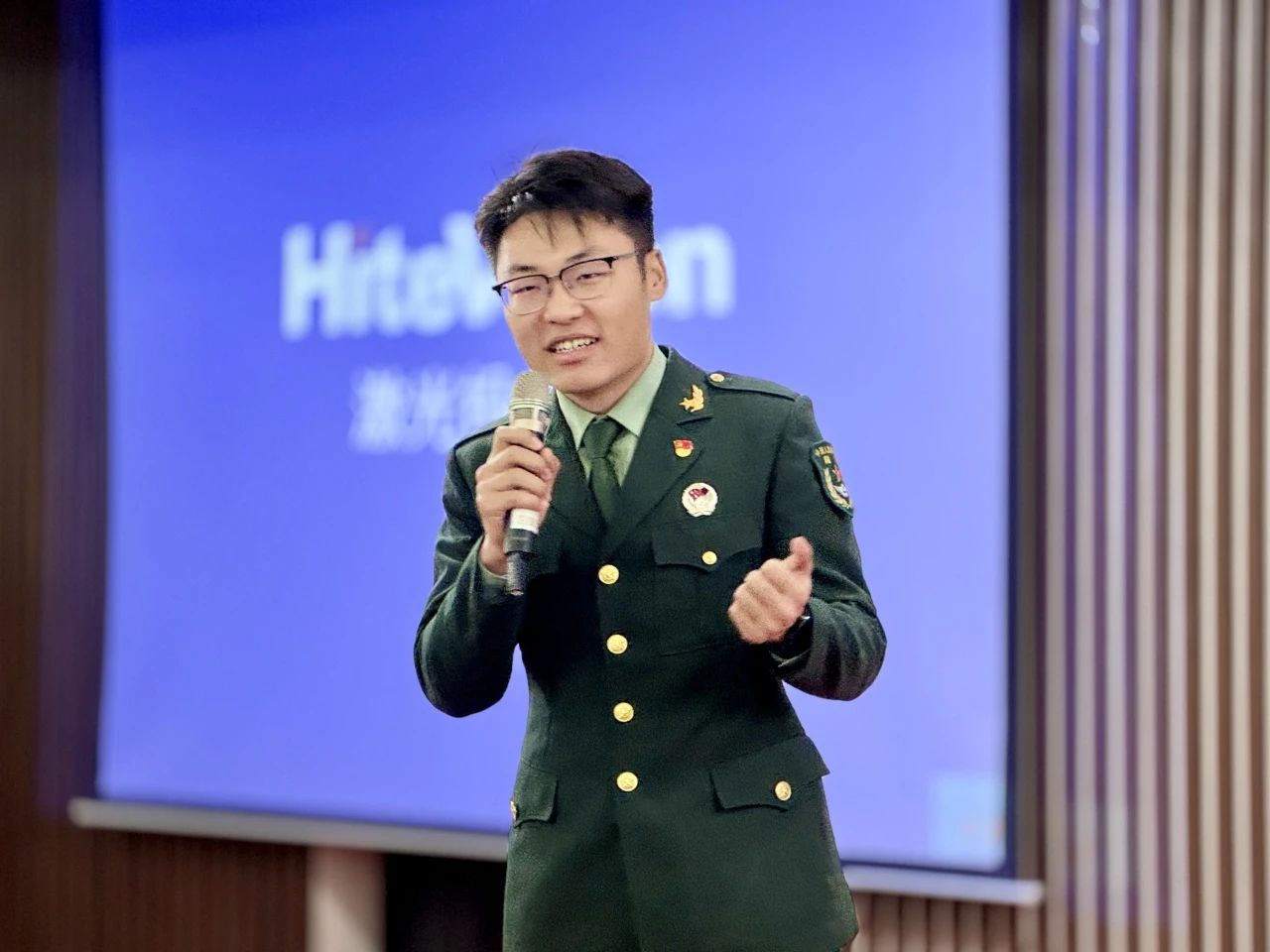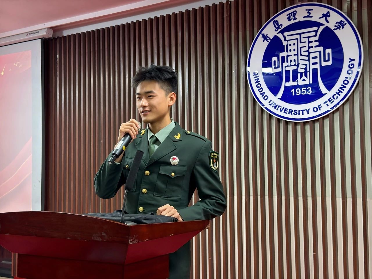 当你询问他的军营生活,他说:唱歌就给饭吃,早六根本睡不醒。看似是对军营生活的调侃,但其中包含了他对军营生活的热爱。经历了艰苦的新兵训练,承受了极限的体能挑战,坚守了孤独的岗位,最终感受到的,是完成任务后的纯粹快乐,是守望边疆时的宁静星空,是与战友们共同战斗的深厚友谊,是从青涩学子到坚定士兵的转变。这一切,构成了一名普通士兵的日常生活。最后他用一句“少年不惧岁月长,彼方尚有荣光在!”结束了他的演讲。